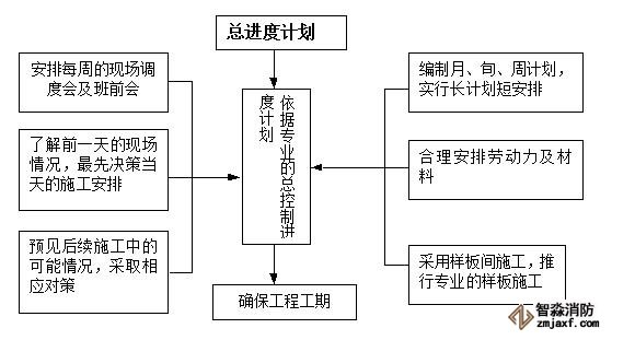 實(shí)行承諾總工期目標(biāo)管理,網(wǎng)絡(luò)計(jì)劃控制,確保總施工工期在合同前完成。