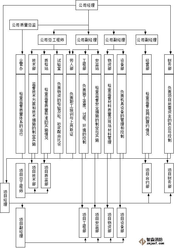 組建工程項(xiàng)目經(jīng)理部來(lái)負(fù)責(zé)本工程的施工組織和管理工作,其成員為:項(xiàng)目經(jīng)理、項(xiàng)目工程師、技術(shù)負(fù)責(zé)人、質(zhì)安員、材料設(shè)備員等。