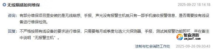 有部分維保項(xiàng)目里安裝的是無線煙感、手報(bào)、聲光沒有報(bào)警主機(jī)就只有一部手機(jī)接收報(bào)警信息,是否需要按有線設(shè)備進(jìn)行維保檢測